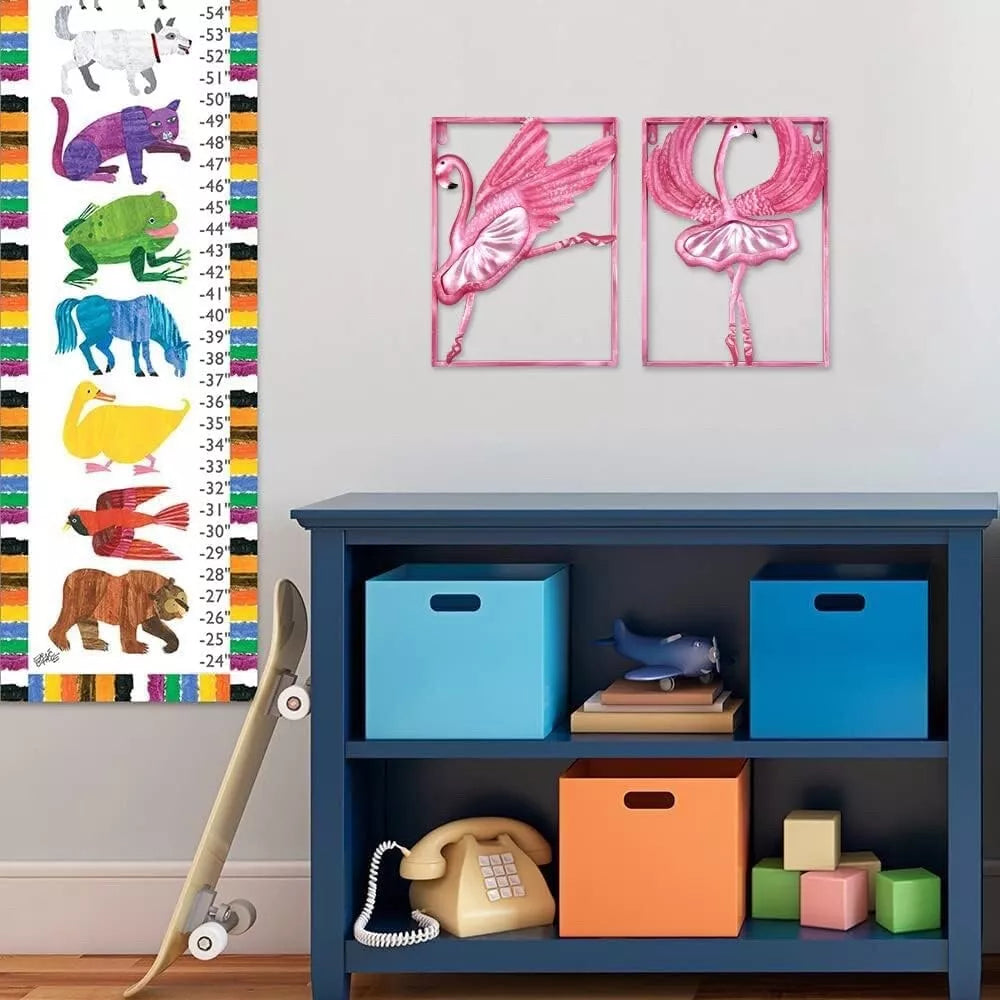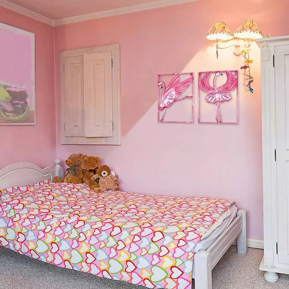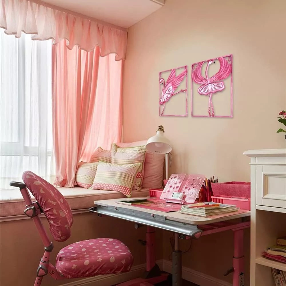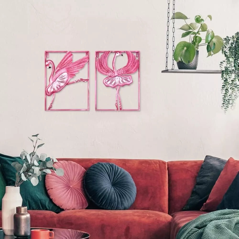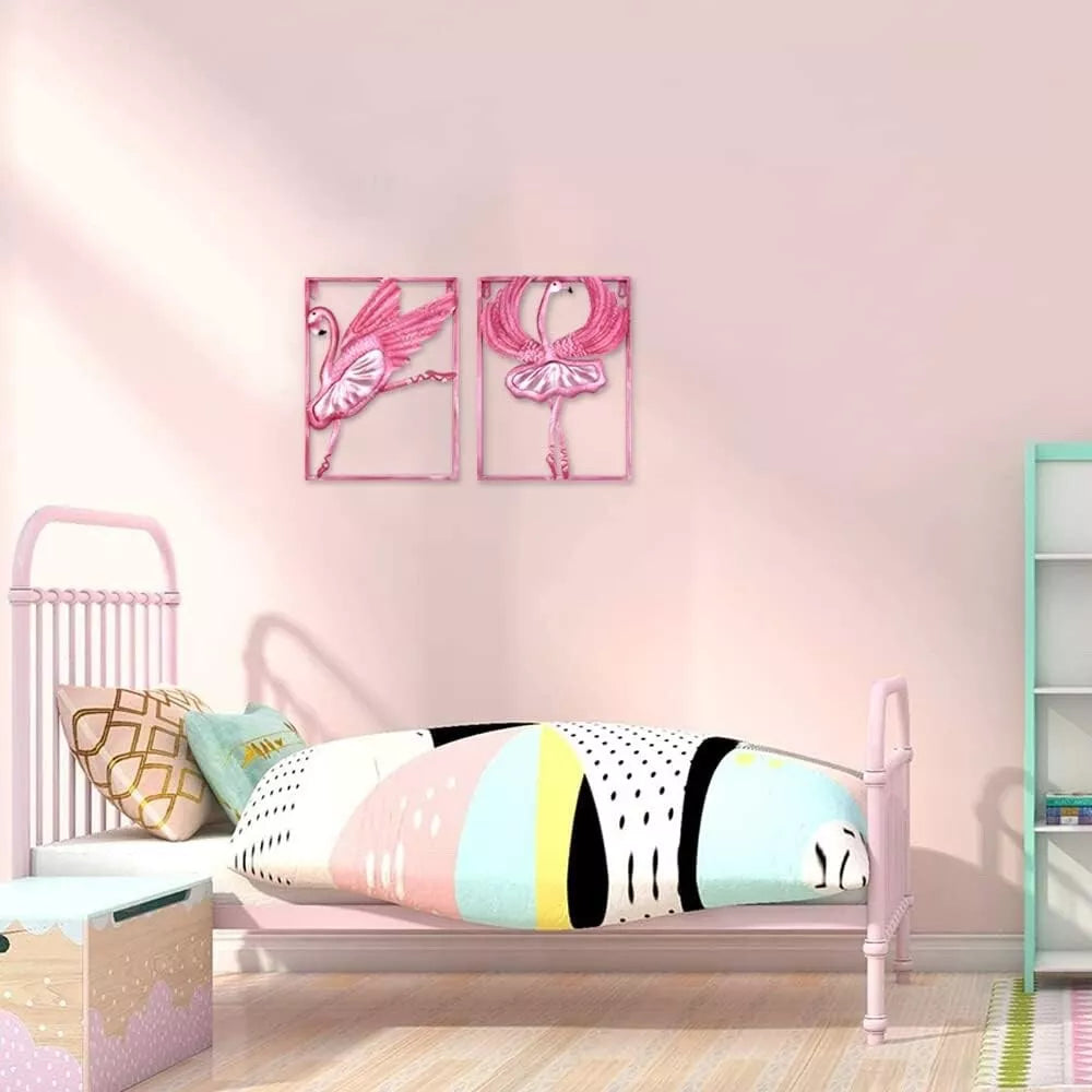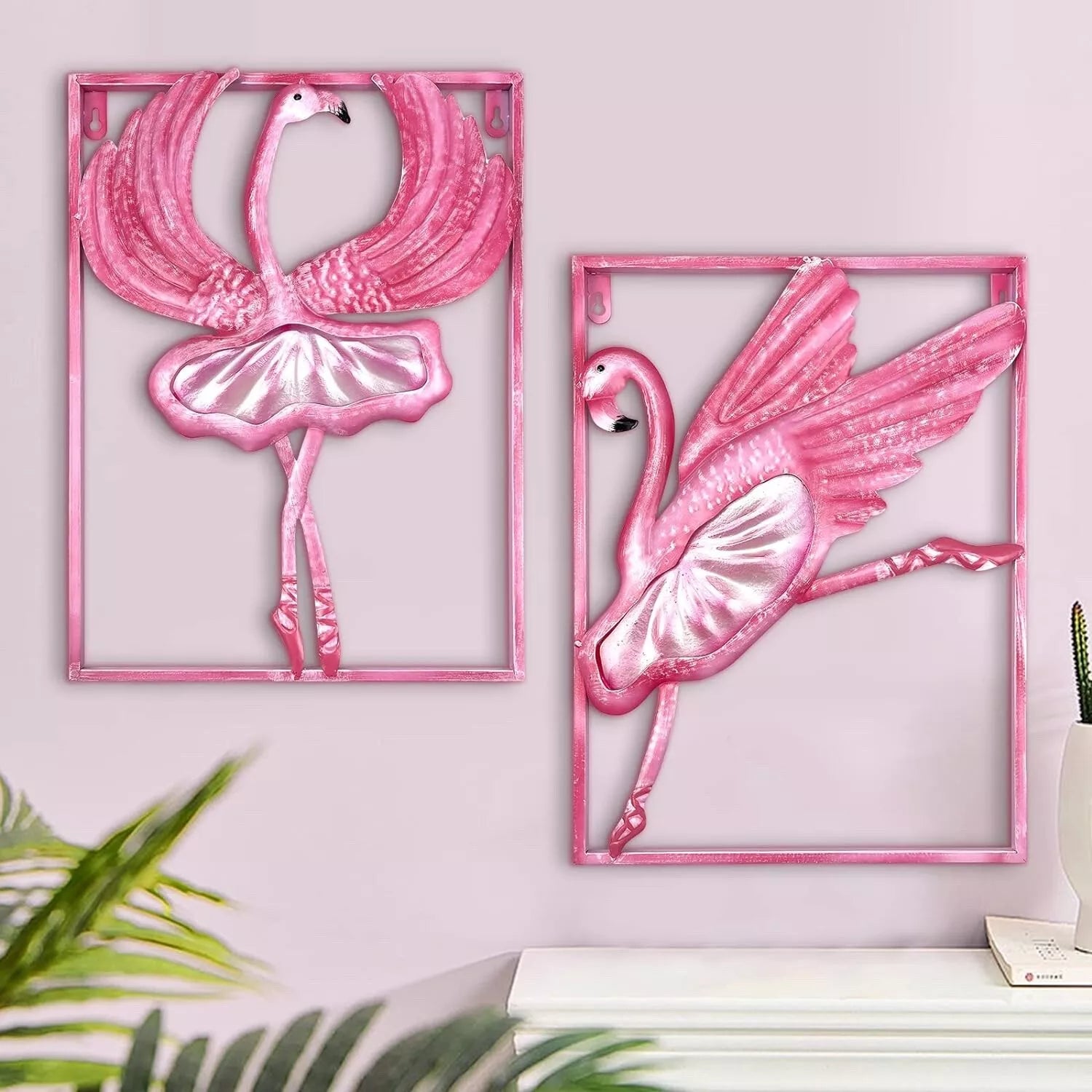 2 x Metal & Glass Flamingo Wall Decor Picture Art Ballet Ballerina Girls Bedroom